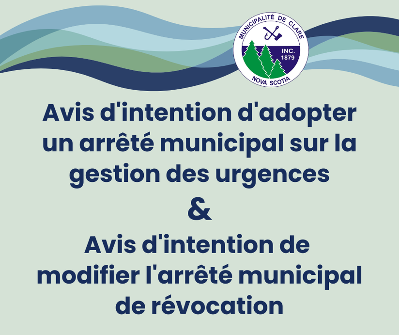 La Municipalité de Clare publie deux avis d'intention pour adopter et modifier des arrêtés municipaux.